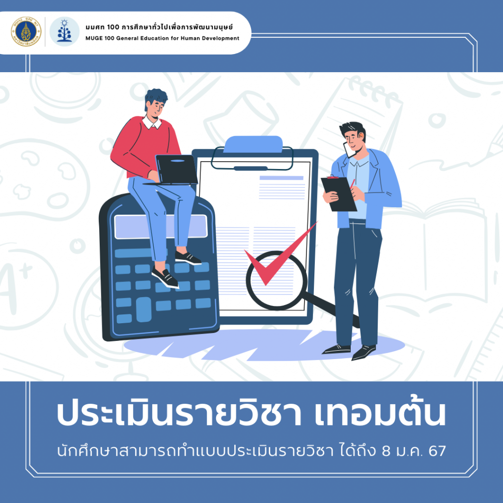 ยินดีต้อนรับนักศึกษาทุกคนสู่ภาคการศึกษาปลาย ปีการศึกษา 2566 เนื่องจากรายวิชา MUGE 100 เป็นรายวิชาที่การการเรียนการสอนต่อเนื่องสองภาคการศึกษา แต่มีการลงทะเบียนแยกกัน มีการประเมินผลจากการเข้าเรียน และมีโครงงาน ทางเจ้าหน้าที่ประสานงานจึงได้รวบรวม checklist สิ่งที่นักศึกษาควรตรวจสอบเกี่ยวกับรายวิชา ดังนี้ การลงทะเบียนเรียนภาคการศึกษาปลาย ปีการศึกษา 2566 นักศึกษาจะต้องลงทะเบียนเรียนในระบบ SmartEDU ให้ถูก Section ตามประกาศกลุ่มเรียนวิชาแกน ศูนย์ส่งเสริมการเรียนรู้แบบบูรณาการชีวิต คลิกที่นี่ การขาดเรียนรายวิชา MUGE 100 ภาคการศึกษาต้น นักศึกษาสามารถตรวจสอบได้ผ่าน MUGE 100 APP หากพบว่ามีข้อมูลผิดพลาด ขอให้นำ “หลักฐานการเข้าเรียน” ในคาบดังกล่าวให้อาจารย์ผู้สอนรับรองการขอเพิ่ม หรือแก้ไข การขาดเรียน ลงใน “บันทึกประจำห้องเรียน” หมายเหตุ: หากอาจารย์ผู้สอนไม่สามารถรับรองการลงชื่อเข้าหรือออกจากห้องเรียนในคาบนั้น ทางทะเบียนรายวิชาจะไม่สามารถแก้ไขผลการเข้าเรียนในคาบดังกล่าวได้ ผลการพิจารณาใบลาที่ส่งมาก่อนเดือนธันวาคม นักศึกษาสามารถตรวจสอบได้ผ่าน MUGE 100 APP หากใบลาได้รับการอนุมัติ นักศึกษาจำเป็นจะต้องเข้าเรียนเสริม ในวันเสาร์ที่ 18 พฤษภาคม 2567 ก่อน จึงจะสามารถชดเชยการขาดเรียนในคาบที่ลาได้ […]